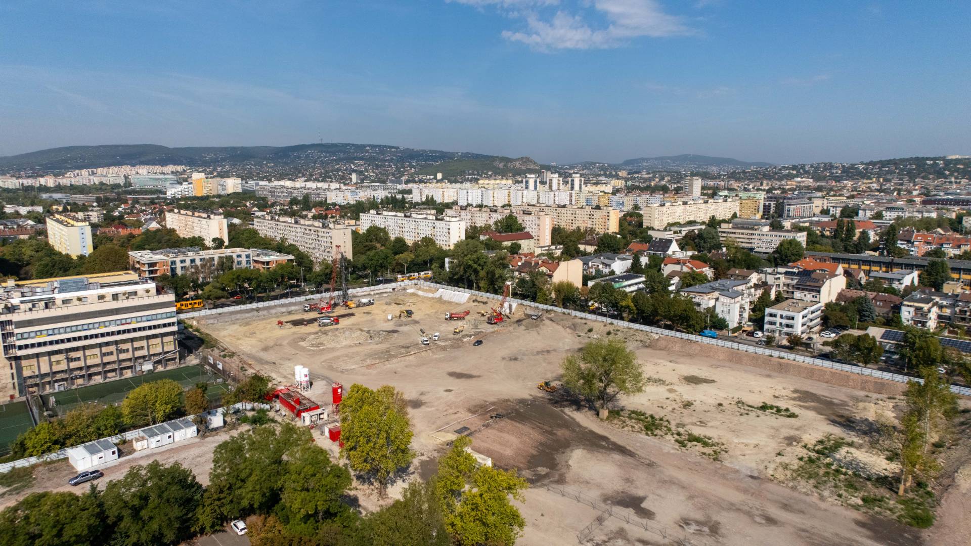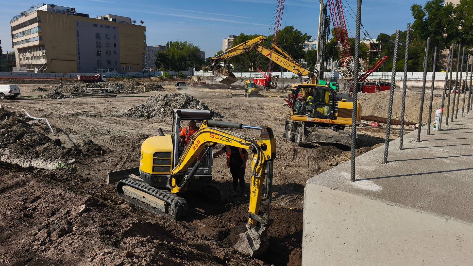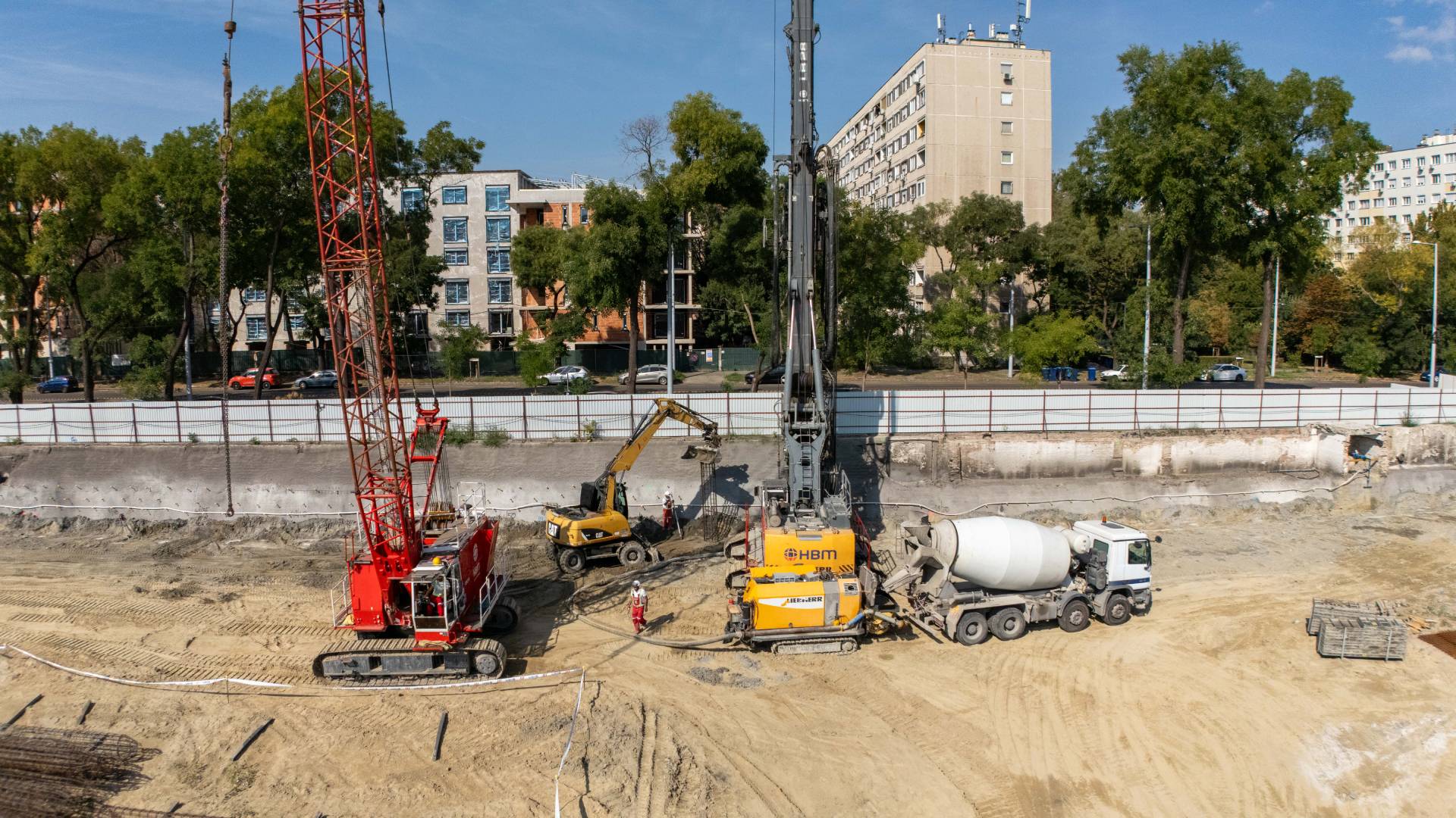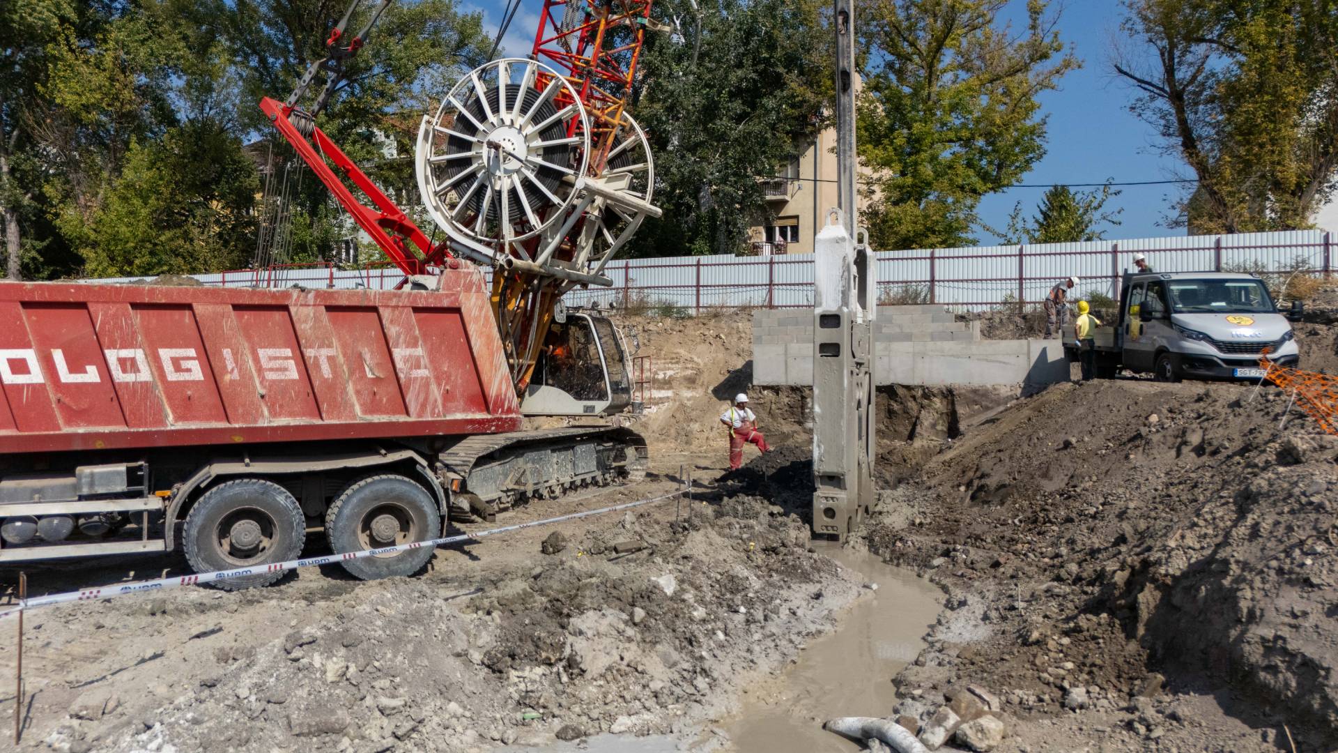 Most a földmunka zajlik, és megtámasztjuk a munkagödröt, hogy a következő lépések biztonságban elindulhassanak. Szeptemberben kezdjük a cölöpözést: ez azt jelenti, hogy vasalt betonoszlopokat süllyesztünk a földbe, amelyek hosszú időre stabil alapot adnak az épületeknek.